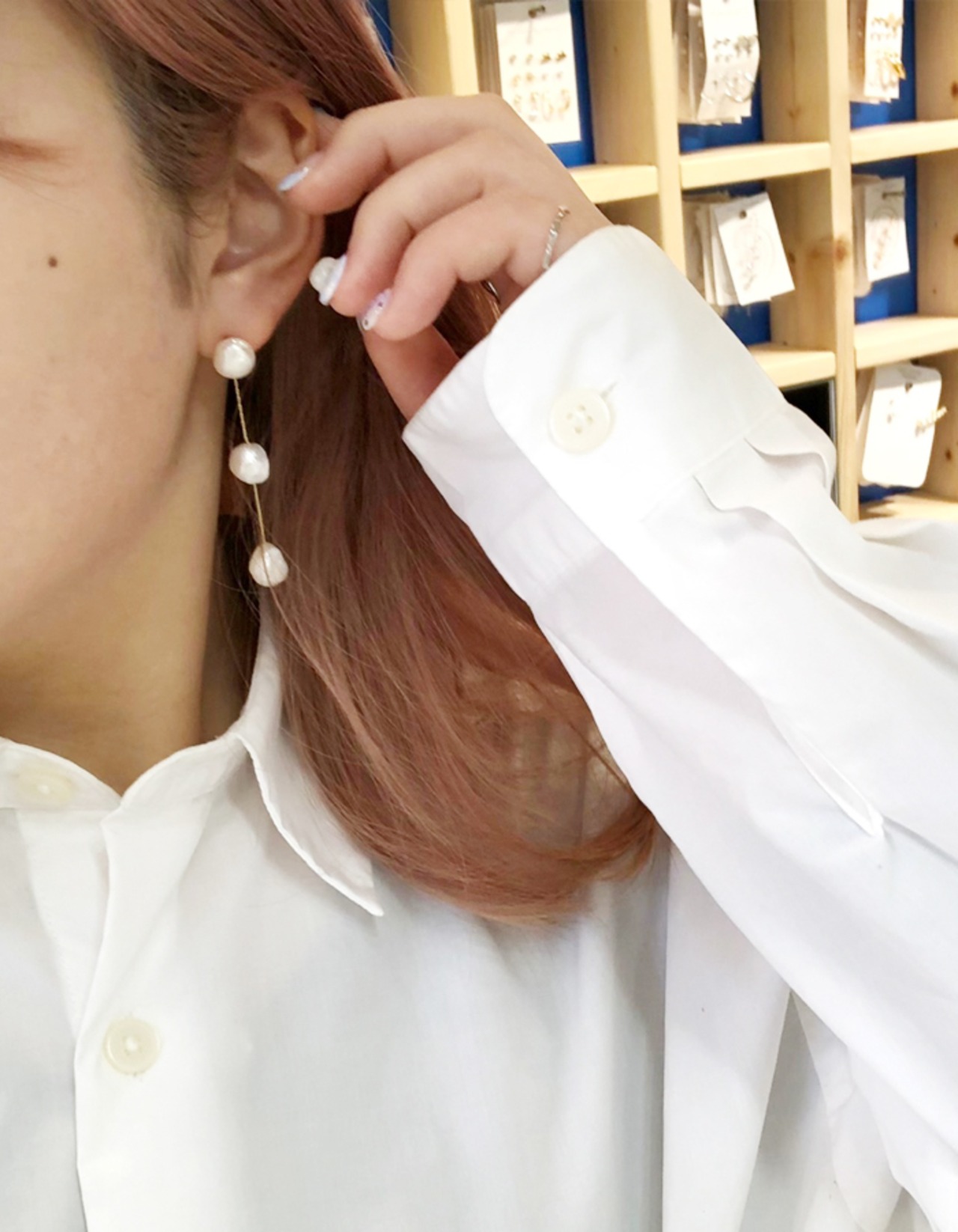 3パールロングピアス