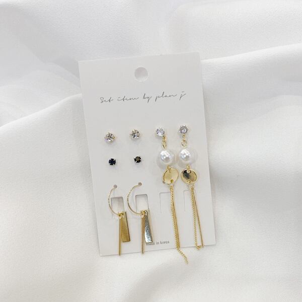 4psetドロップピアスgold