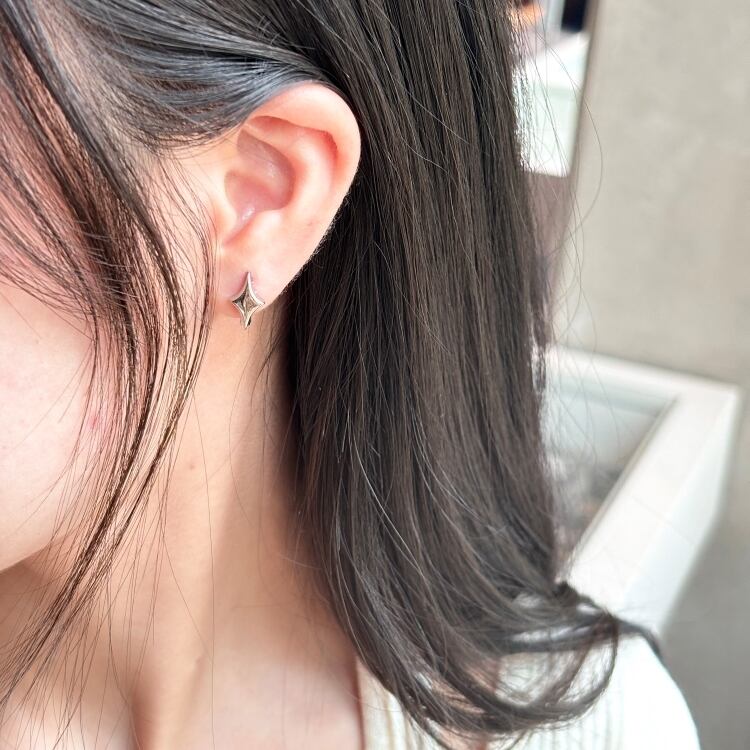 小さめのダイヤ型が耳元で華やかさを引き立て、シンプルながらもおしゃれな印象を与えてくれます。