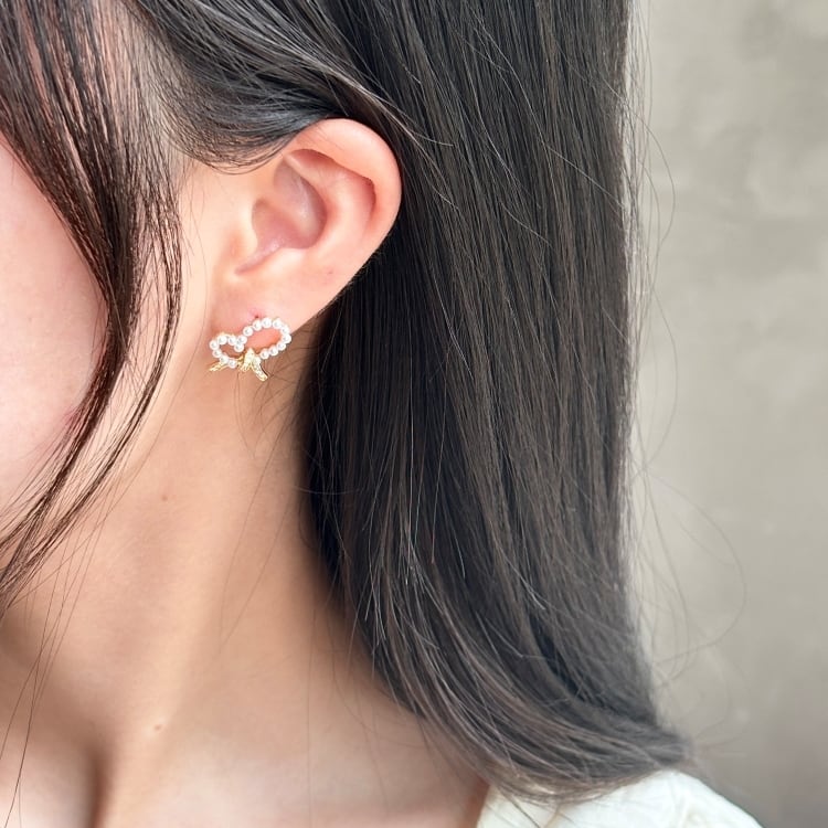 シンプルながらも存在感のあるデザインは、日常使いから特別な日まで幅広くお使いいただけます。ハートの形にはパールが煌めき、周りを明るく彩ります。耳元で揺れるたびに、女性らしい優しさと華やかさを演出してくれることでしょう。