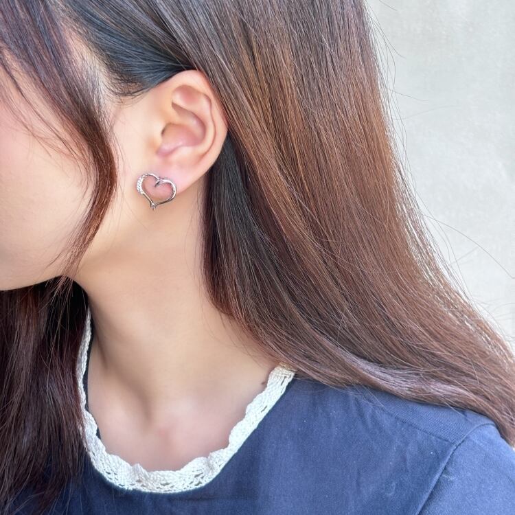 愛らしいキュービックハートピアスをご紹介します。小さなハートの形に散りばめられたキュービックが、耳元でキラキラと輝きます。